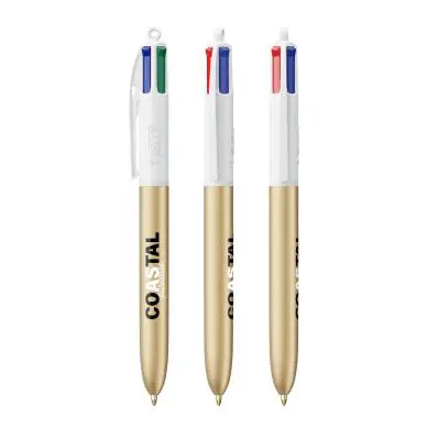 Ce stylo BIC 4 Couleurs, emblème de la marque, se pare désormais de teintes métalliques étincelantes. Il est disponible avec quatre encres classiques : bleu, noir, rouge et vert. Ce célèbre BIC 4 Couleurs devient plus écoresponsable, avec une réduction de 13 % du plastique dans sa partie supérieure ! CARACTÉRISTIQUES : Matière : plastique Dimensions : largeur / 1,6 cm, hauteur / 14,4 cm, profondeur / 1,1 cm, diamètre / 1,1 cm Poids : 12,8 g MARQUAGES : Ce stylo bic 4 couleurs à un marquage en sérigraphie Ce stylo bic 4 couleurs à un marquage en gravure laser